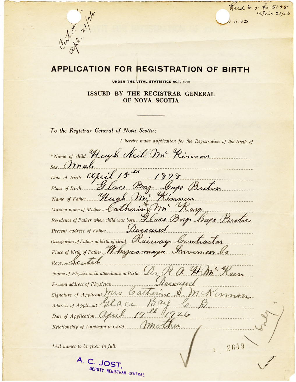Nova Scotia Archives — https://archives.novascotia.ca/vital-statistics/birth/?ID=461232