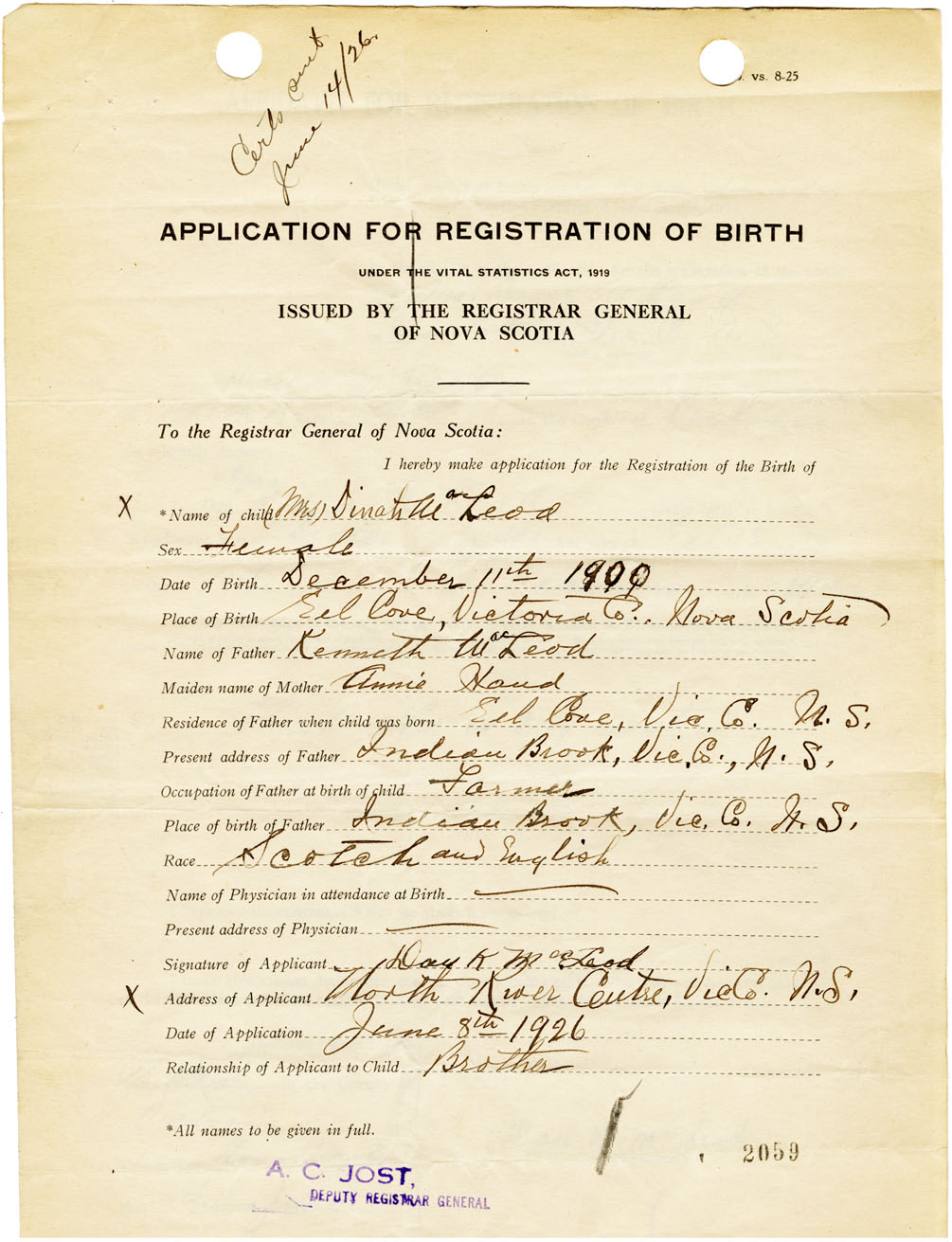 Nova Scotia Archives — https://archives.novascotia.ca/vital-statistics/birth/?ID=461239