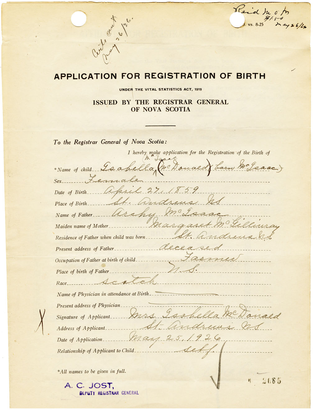 Nova Scotia Archives — https://archives.novascotia.ca/vital-statistics/birth/?ID=461257