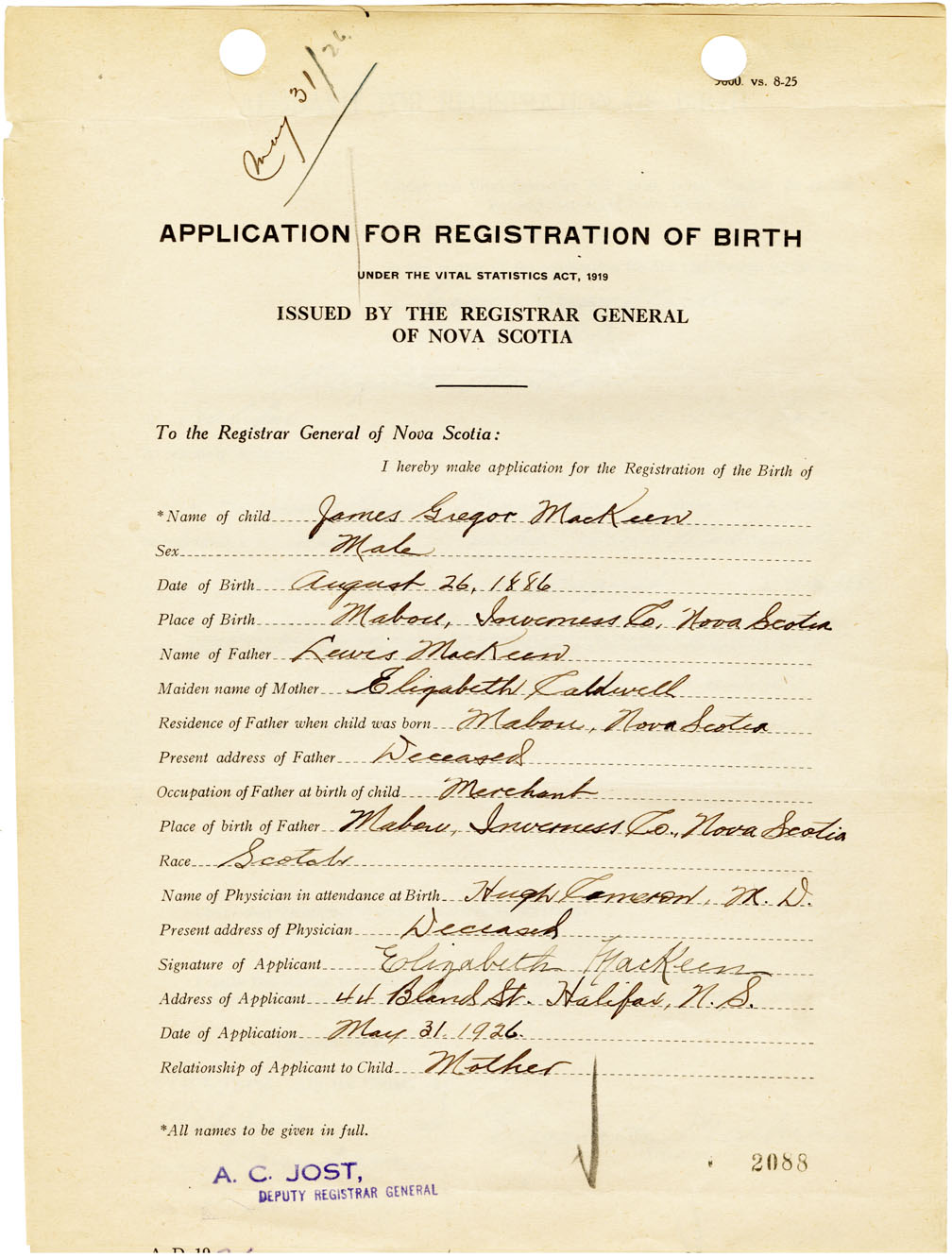 Nova Scotia Archives — https://archives.novascotia.ca/vital-statistics/birth/?ID=461260