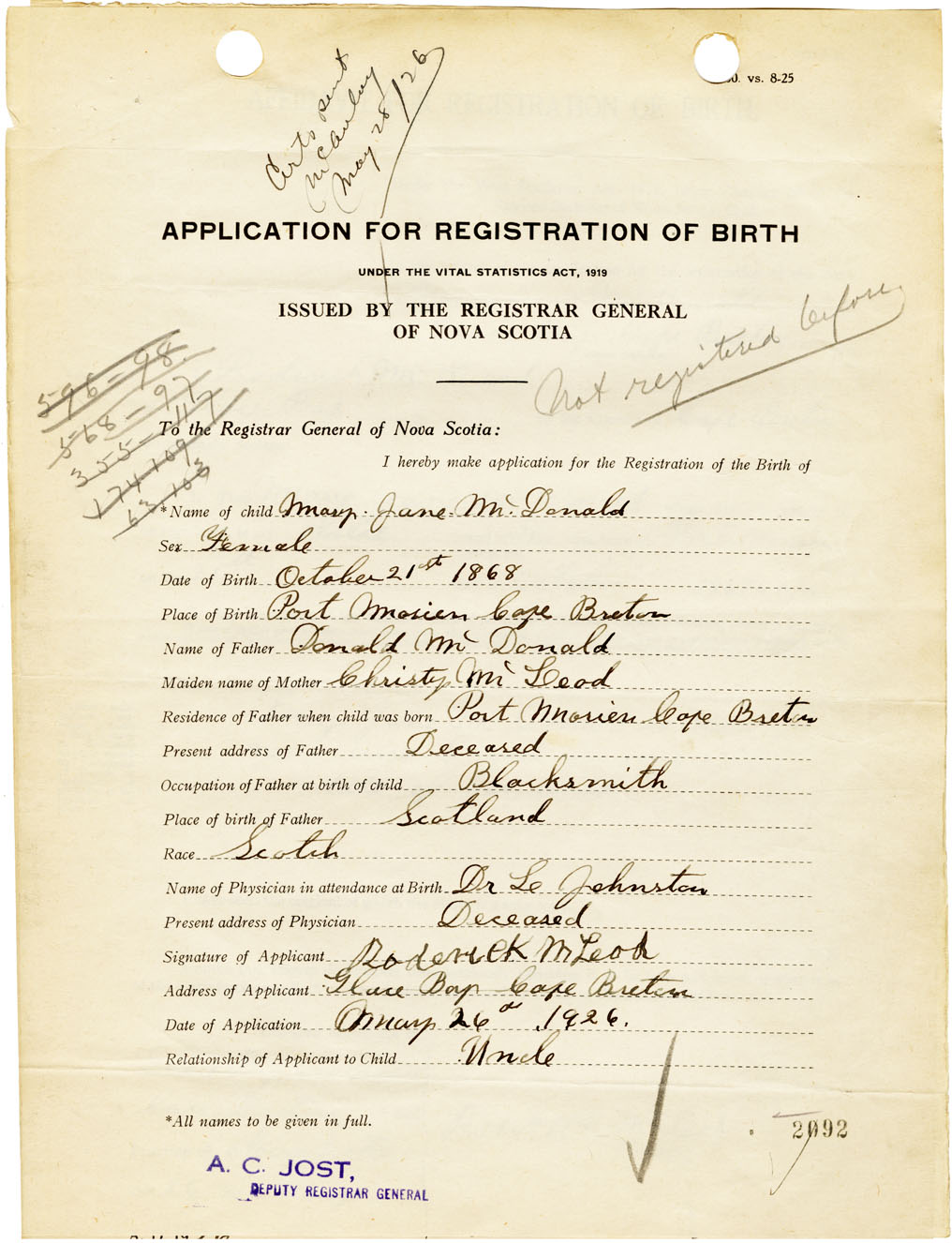 Nova Scotia Archives — https://archives.novascotia.ca/vital-statistics/birth/?ID=461264
