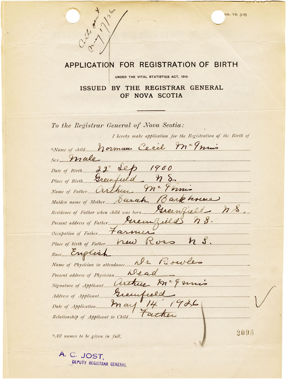 Nova Scotia Archives — https://archives.novascotia.ca/vital-statistics/birth/?ID=461268