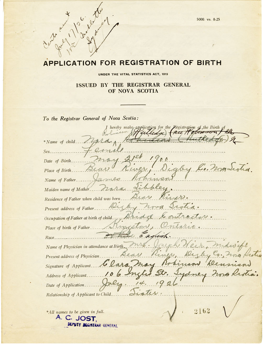 Nova Scotia Archives — https://archives.novascotia.ca/vital-statistics/birth/?ID=461312