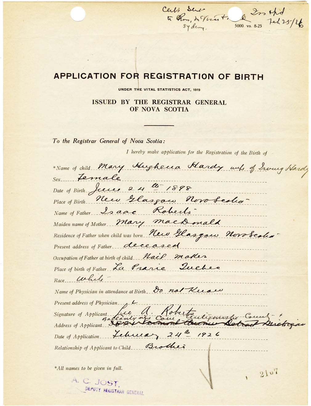 Nova Scotia Archives — https://archives.novascotia.ca/vital-statistics/birth/?ID=461315