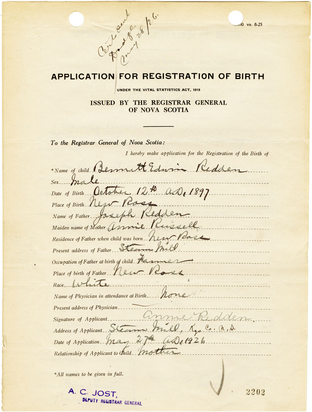 Nova Scotia Archives — https://archives.novascotia.ca/vital-statistics/birth/?ID=461337