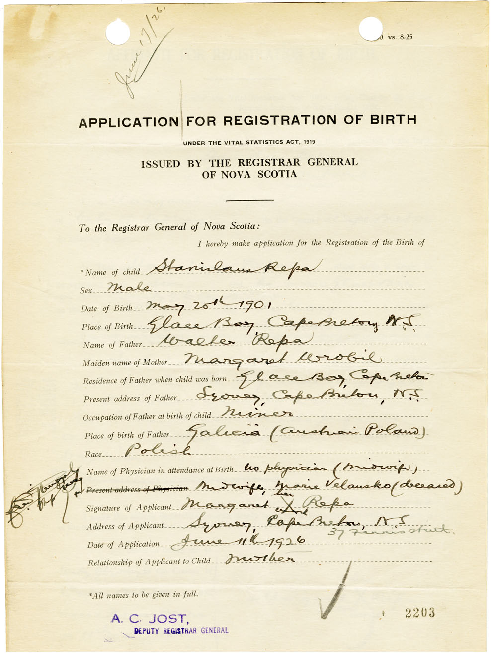 Nova Scotia Archives — https://archives.novascotia.ca/vital-statistics/birth/?ID=461338