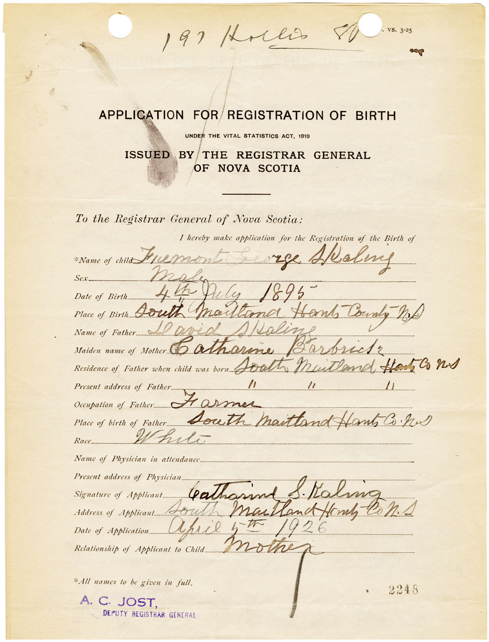Nova Scotia Archives — https://archives.novascotia.ca/vital-statistics/birth/?ID=461368