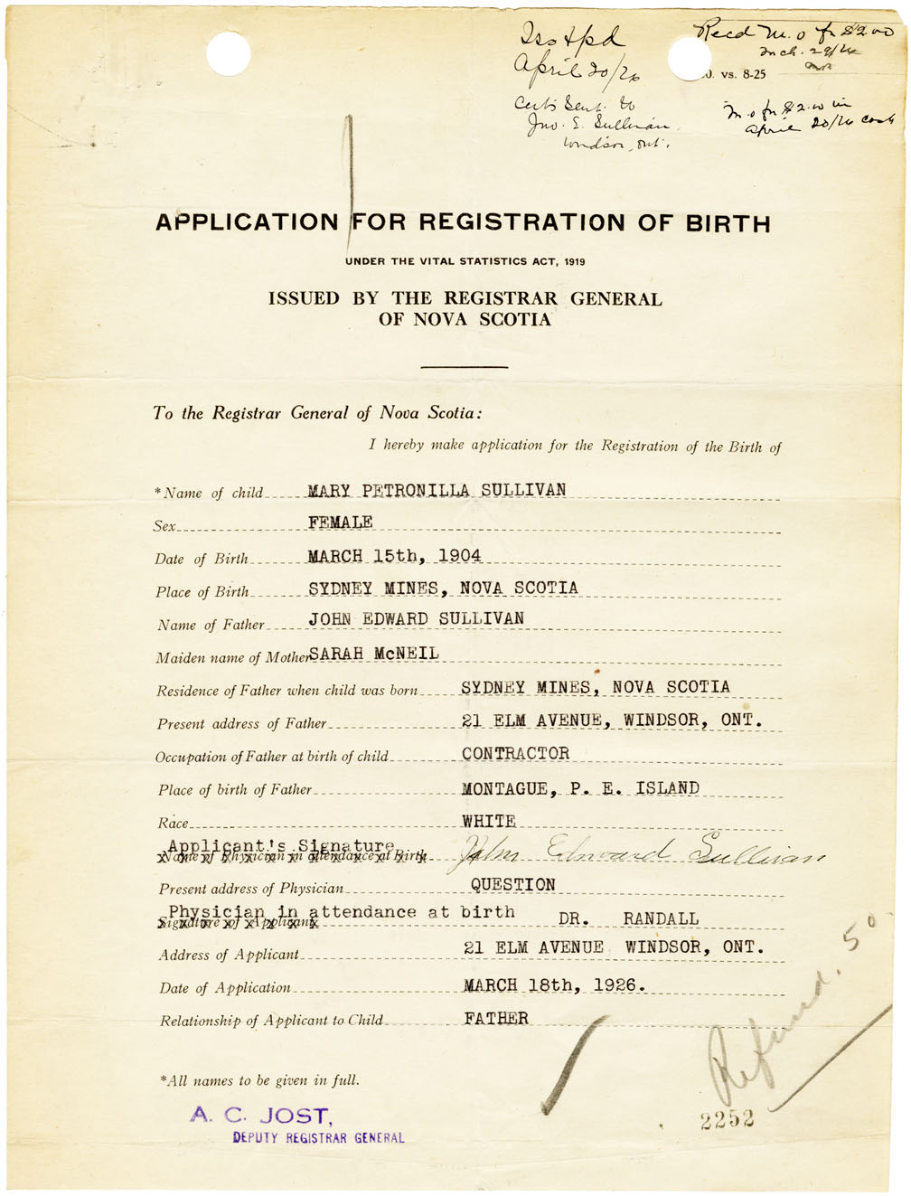 Nova Scotia Archives — https://archives.novascotia.ca/vital-statistics/birth/?ID=461371