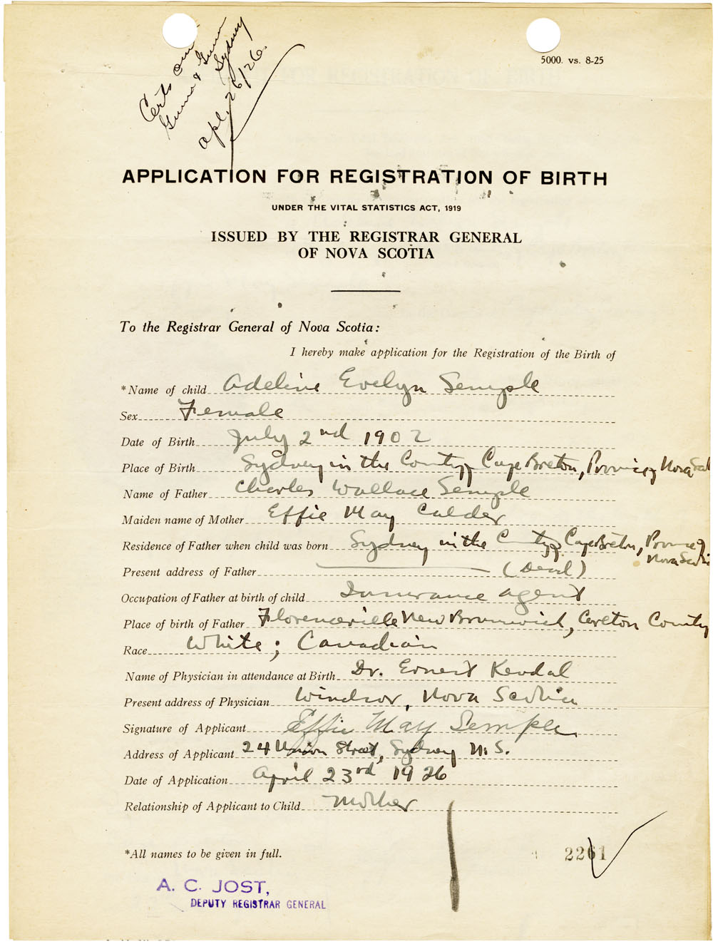 Nova Scotia Archives — https://archives.novascotia.ca/vital-statistics/birth/?ID=461378