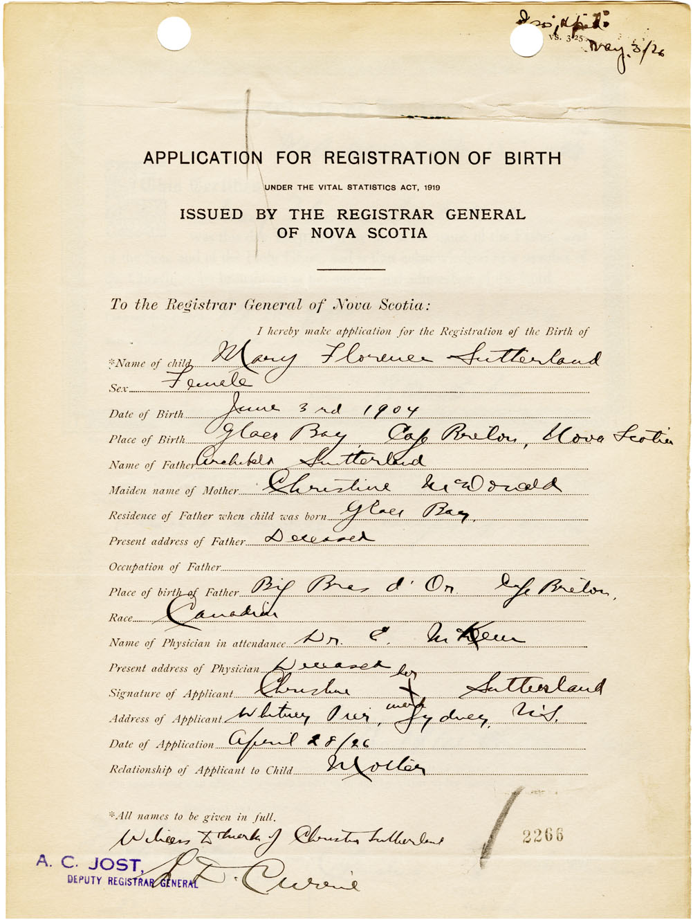 Nova Scotia Archives — https://archives.novascotia.ca/vital-statistics/birth/?ID=461381