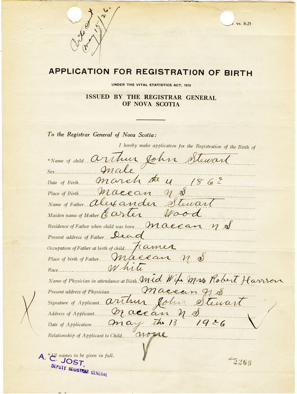 Nova Scotia Archives — https://archives.novascotia.ca/vital-statistics/birth/?ID=461383