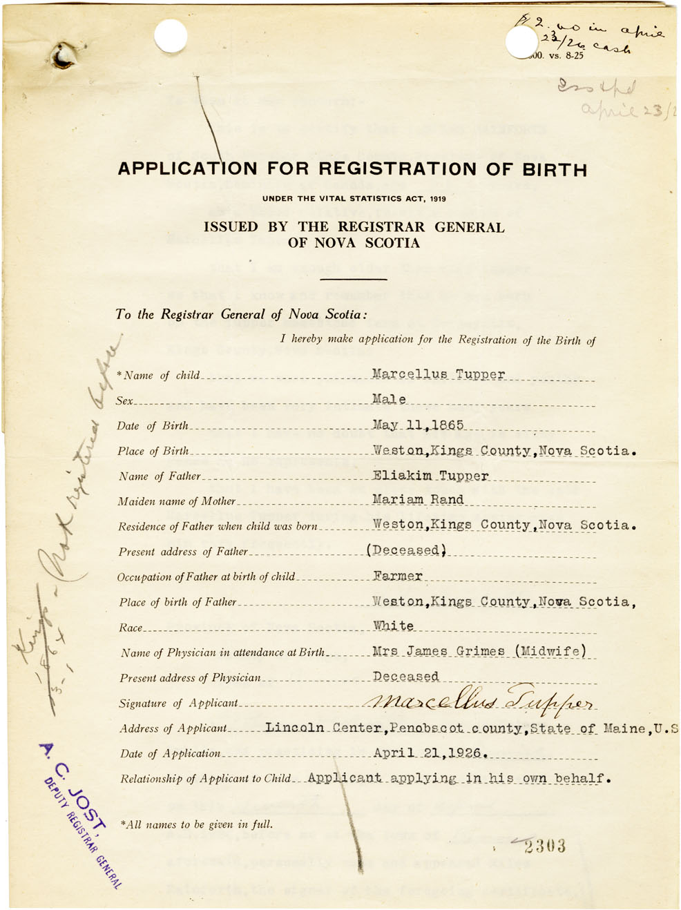 Nova Scotia Archives — https://archives.novascotia.ca/vital-statistics/birth/?ID=461401