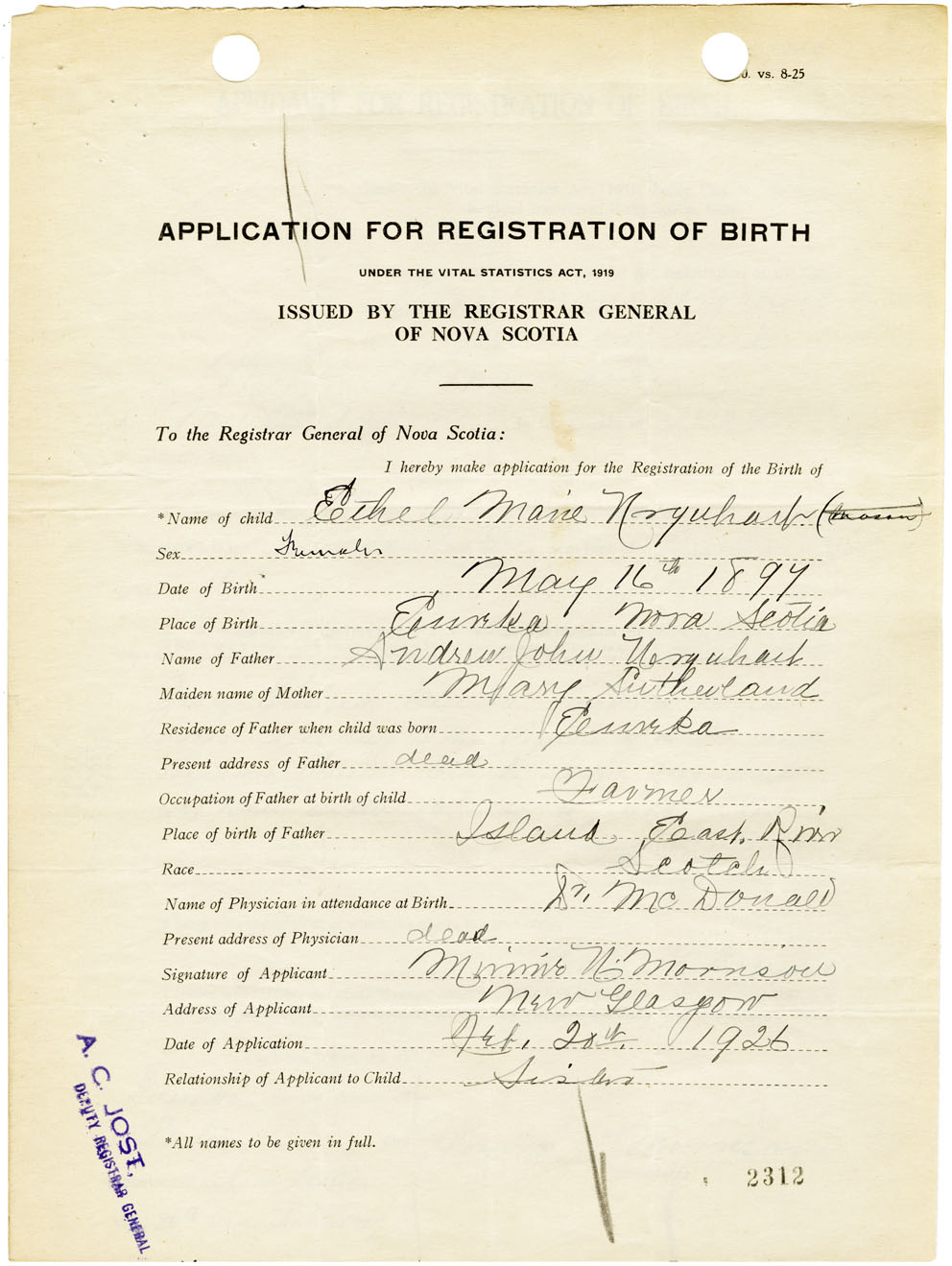 Nova Scotia Archives — https://archives.novascotia.ca/vital-statistics/birth/?ID=461408