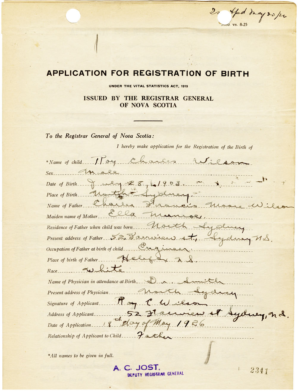Nova Scotia Archives — https://archives.novascotia.ca/vital-statistics/birth/?ID=461430