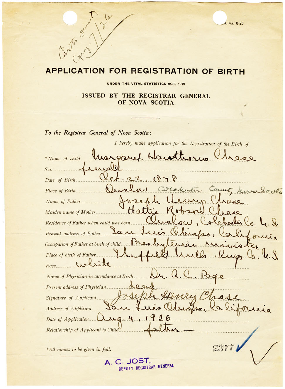 Nova Scotia Archives — https://archives.novascotia.ca/vital-statistics/birth/?ID=461457