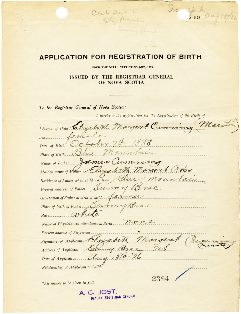 Nova Scotia Archives — https://archives.novascotia.ca/vital-statistics/birth/?ID=461464