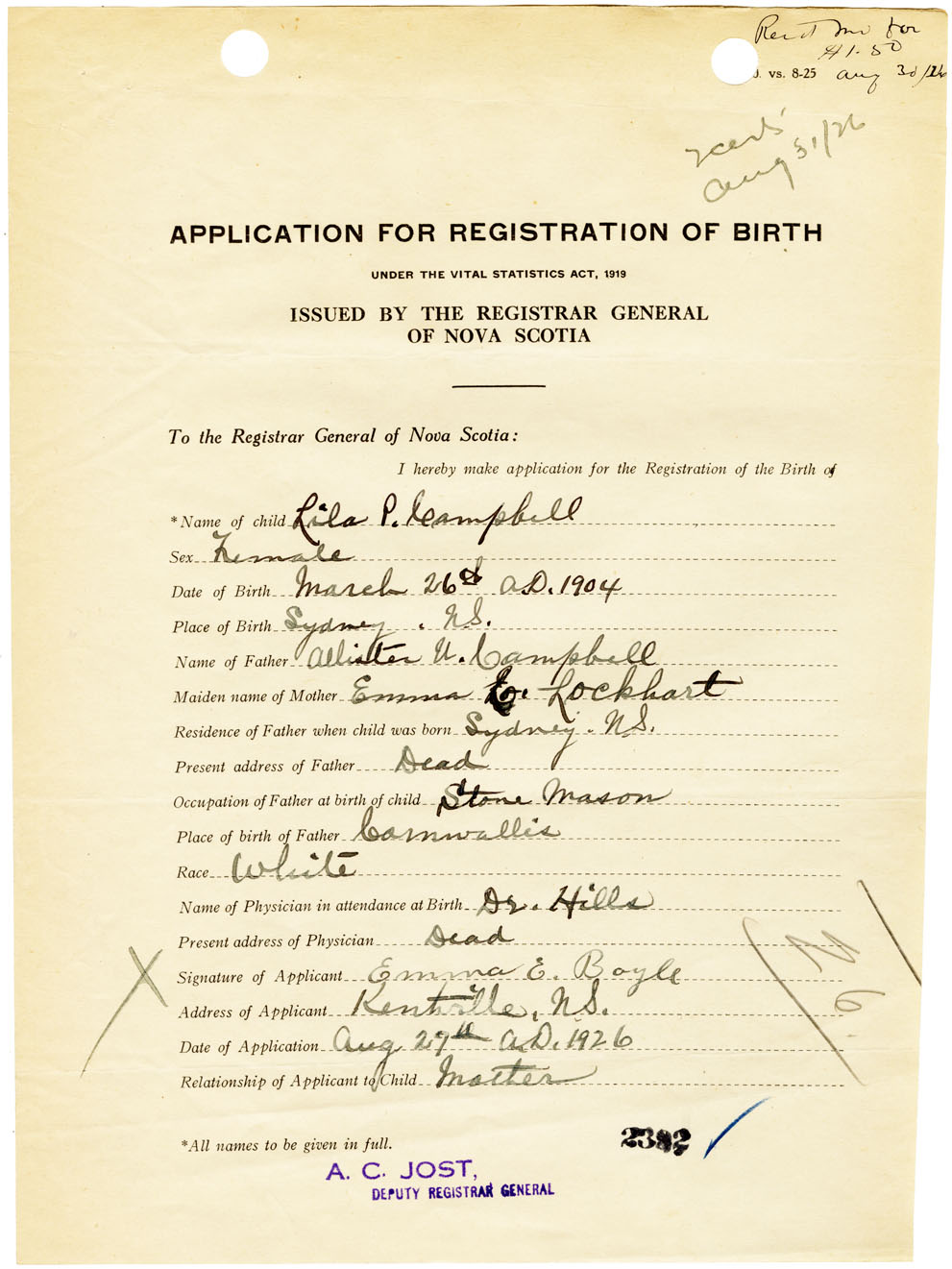 Nova Scotia Archives — https://archives.novascotia.ca/vital-statistics/birth/?ID=461472
