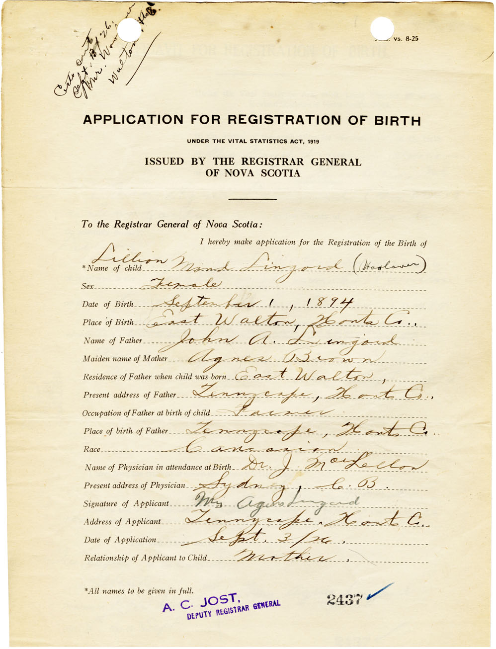 Nova Scotia Archives — https://archives.novascotia.ca/vital-statistics/birth/?ID=461504