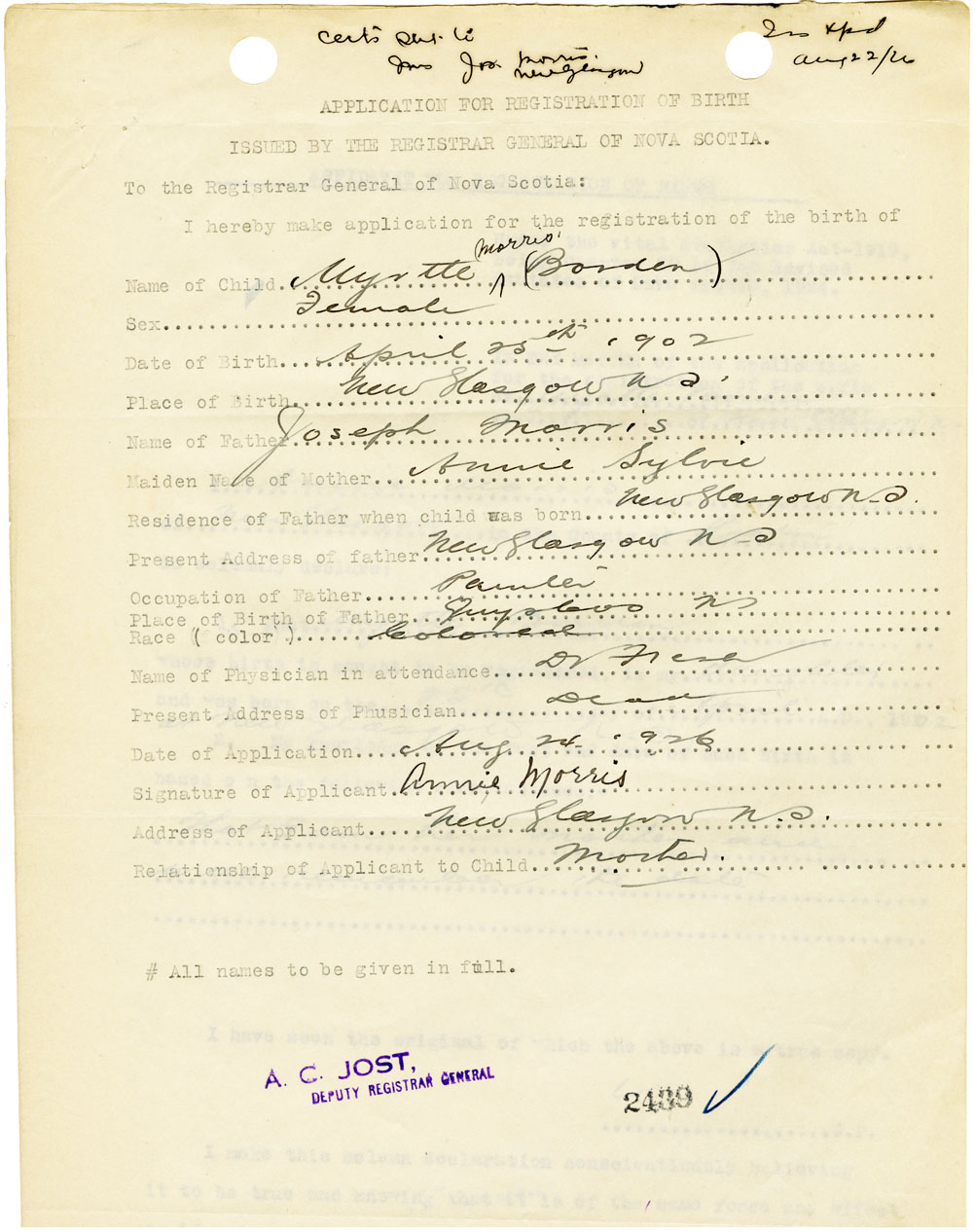 Nova Scotia Archives — https://archives.novascotia.ca/vital-statistics/birth/?ID=461506