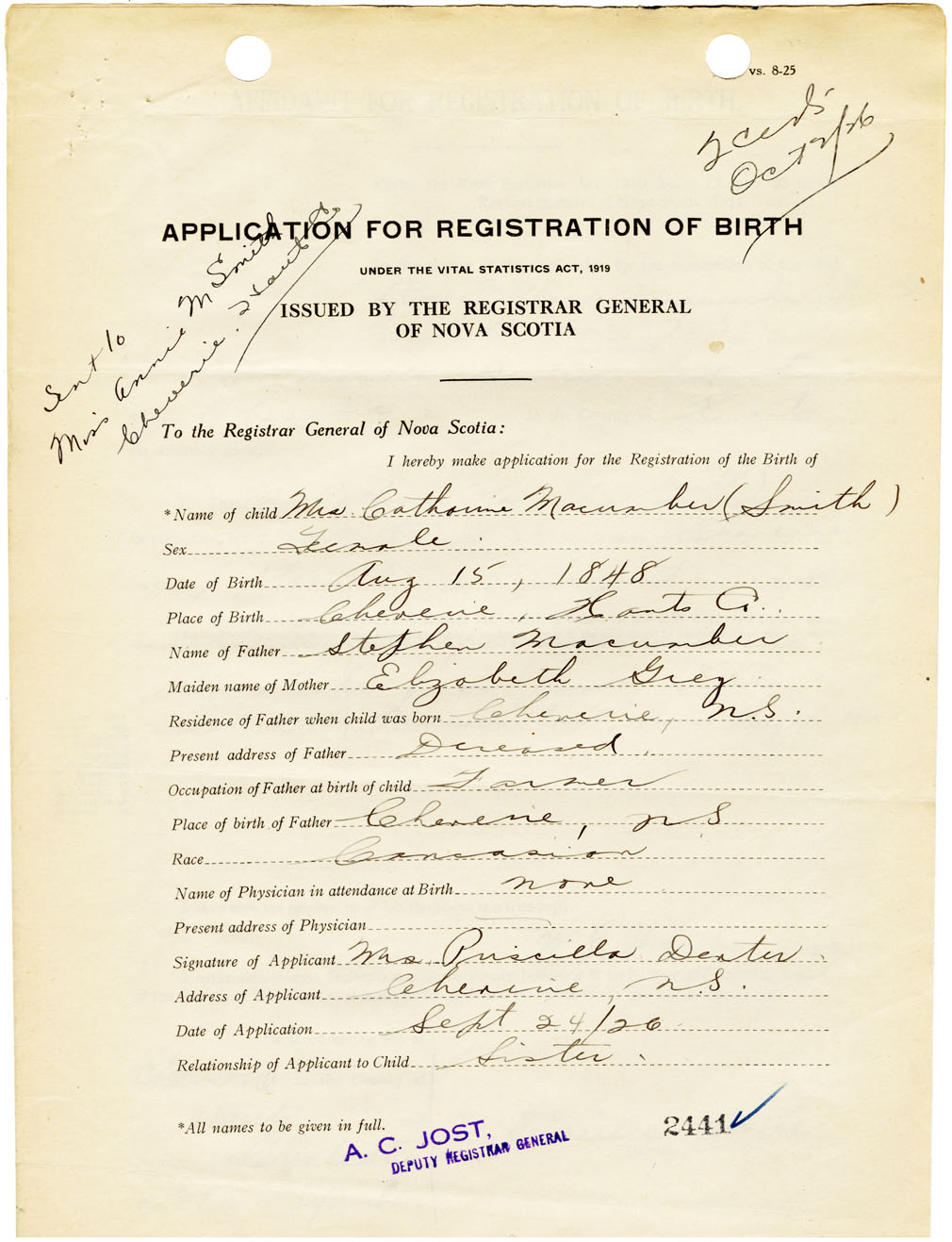 Nova Scotia Archives — https://archives.novascotia.ca/vital-statistics/birth/?ID=461508