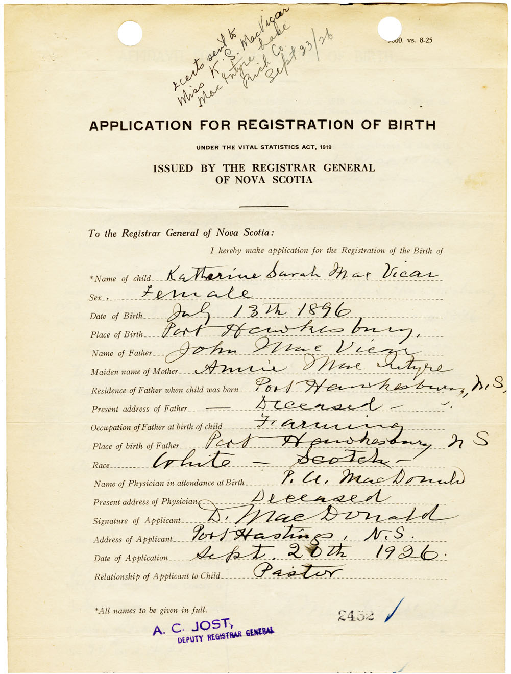 Nova Scotia Archives — https://archives.novascotia.ca/vital-statistics/birth/?ID=461516
