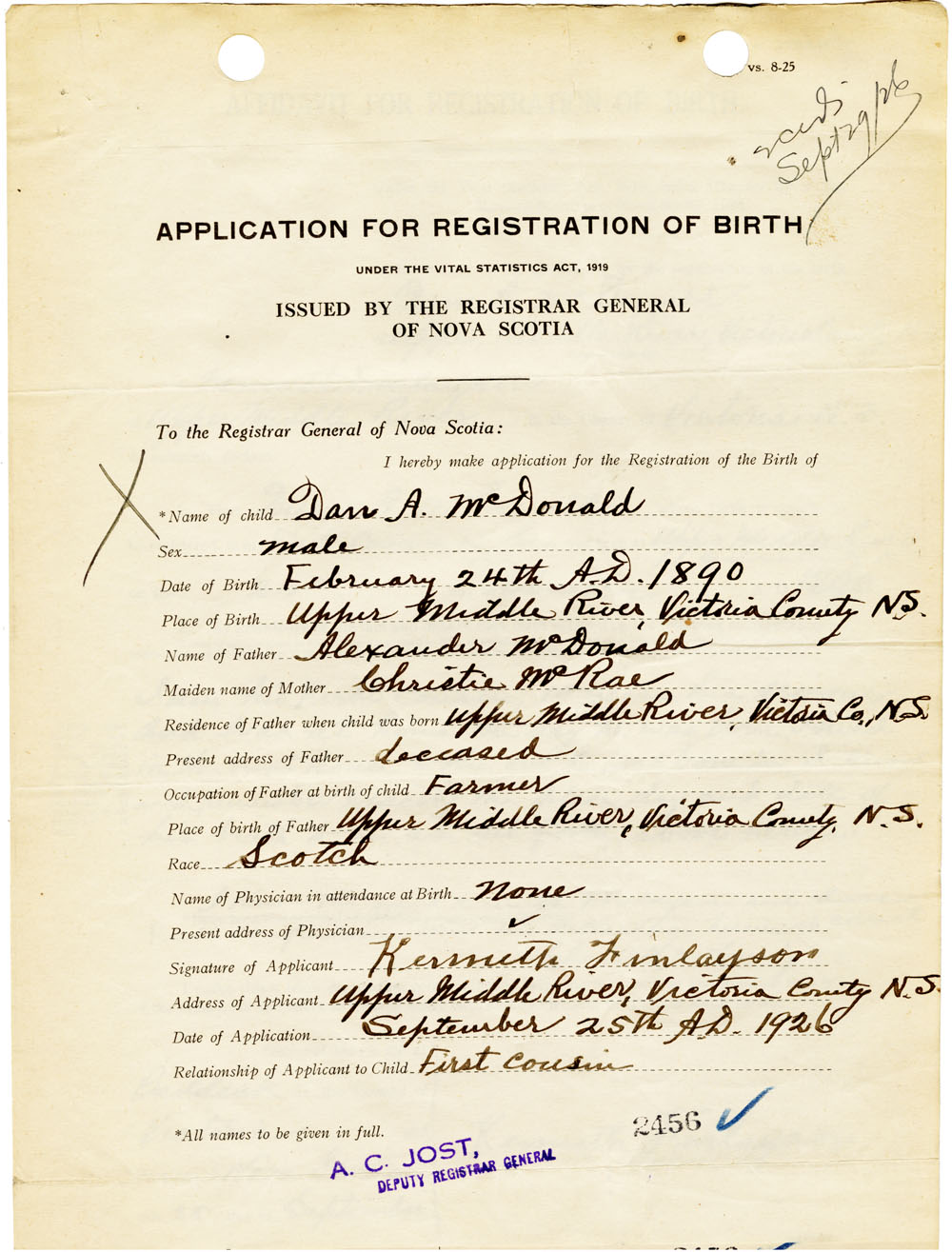 Nova Scotia Archives — https://archives.novascotia.ca/vital-statistics/birth/?ID=461520