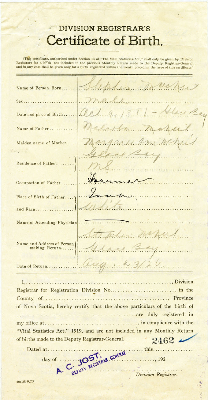 Nova Scotia Archives — https://archives.novascotia.ca/vital-statistics/birth/?ID=461524