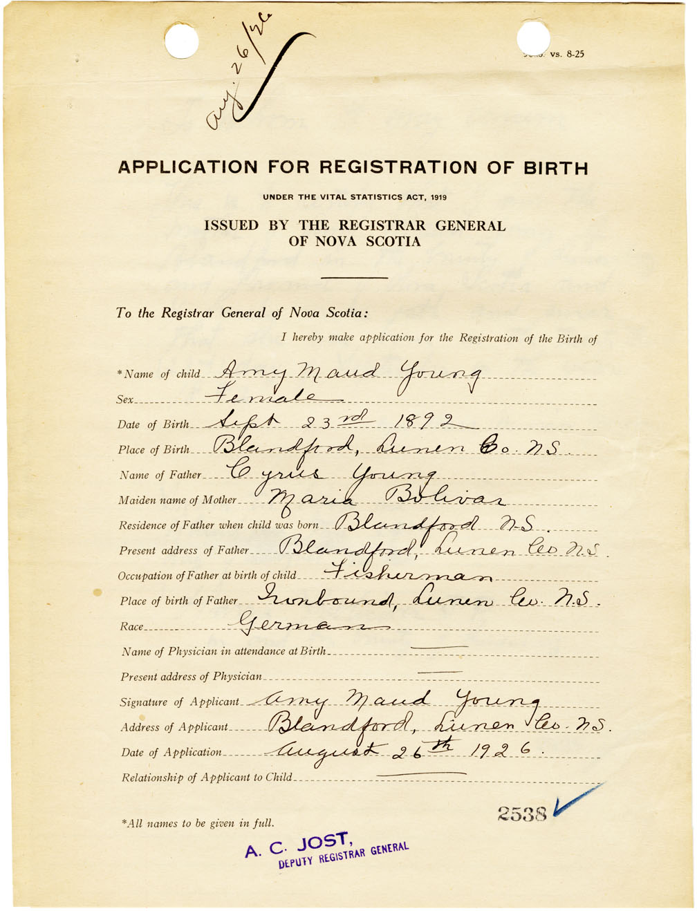 Nova Scotia Archives — https://archives.novascotia.ca/vital-statistics/birth/?ID=461571