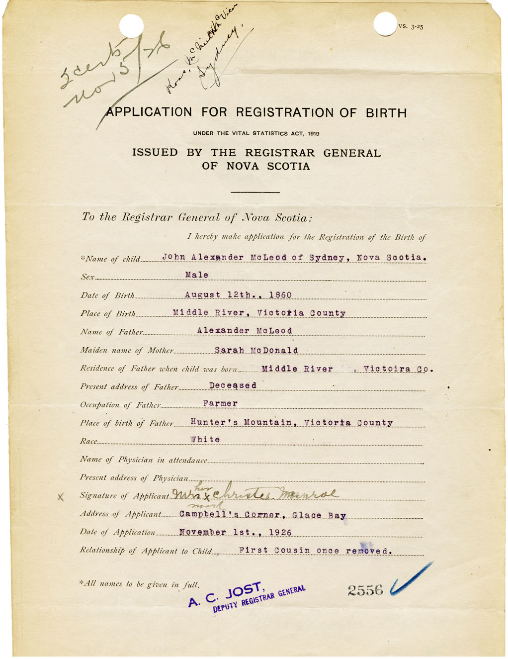 Nova Scotia Archives — https://archives.novascotia.ca/vital-statistics/birth/?ID=461584