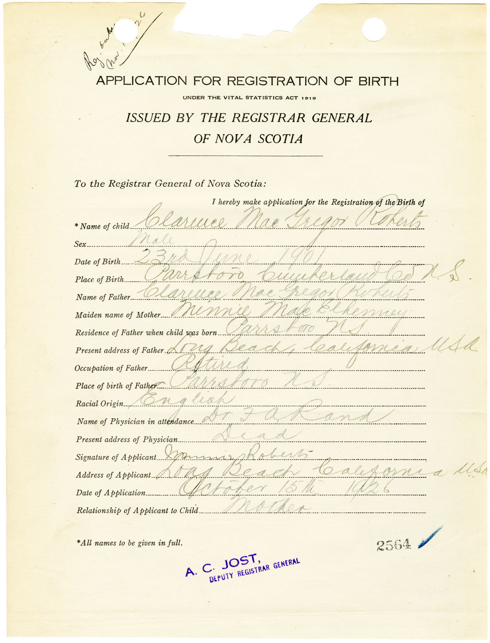 Nova Scotia Archives — https://archives.novascotia.ca/vital-statistics/birth/?ID=461590