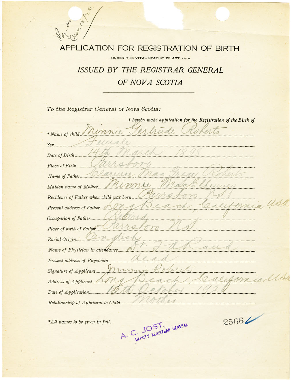 Nova Scotia Archives — https://archives.novascotia.ca/vital-statistics/birth/?ID=461592