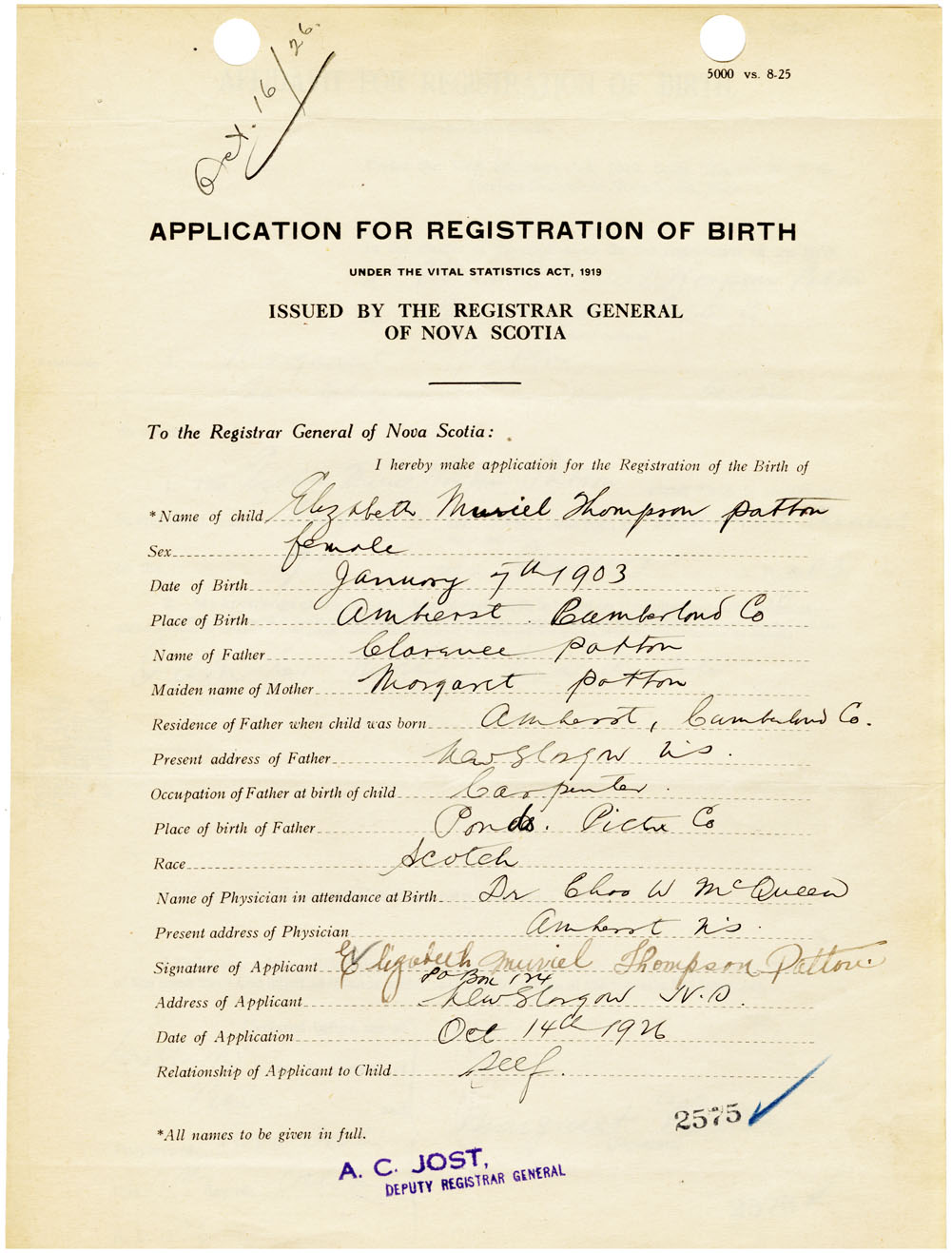 Nova Scotia Archives — https://archives.novascotia.ca/vital-statistics/birth/?ID=461600