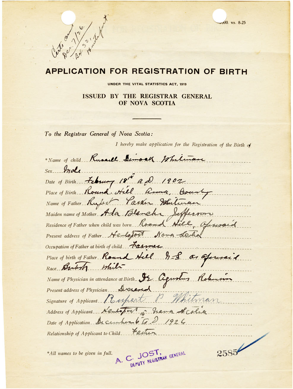 Nova Scotia Archives — https://archives.novascotia.ca/vital-statistics/birth/?ID=461607