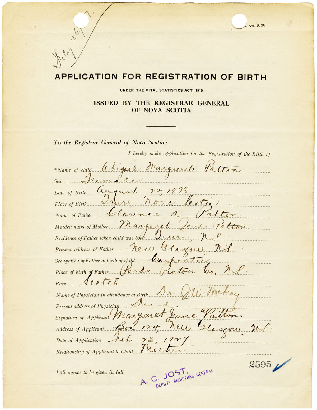 Nova Scotia Archives — https://archives.novascotia.ca/vital-statistics/birth/?ID=461615