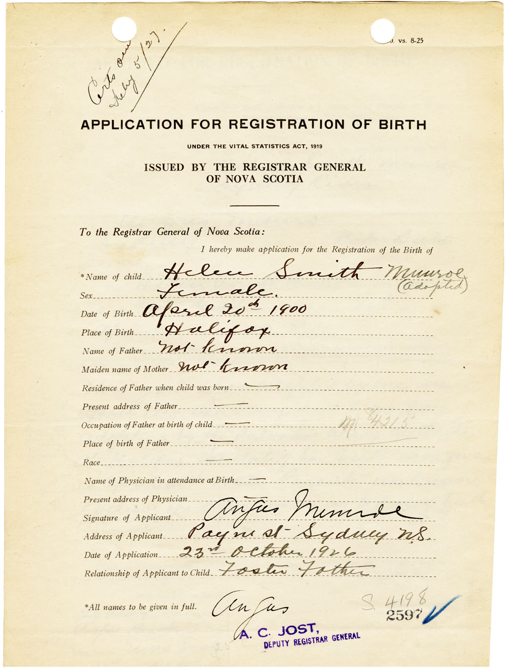 Nova Scotia Archives — https://archives.novascotia.ca/vital-statistics/birth/?ID=461617