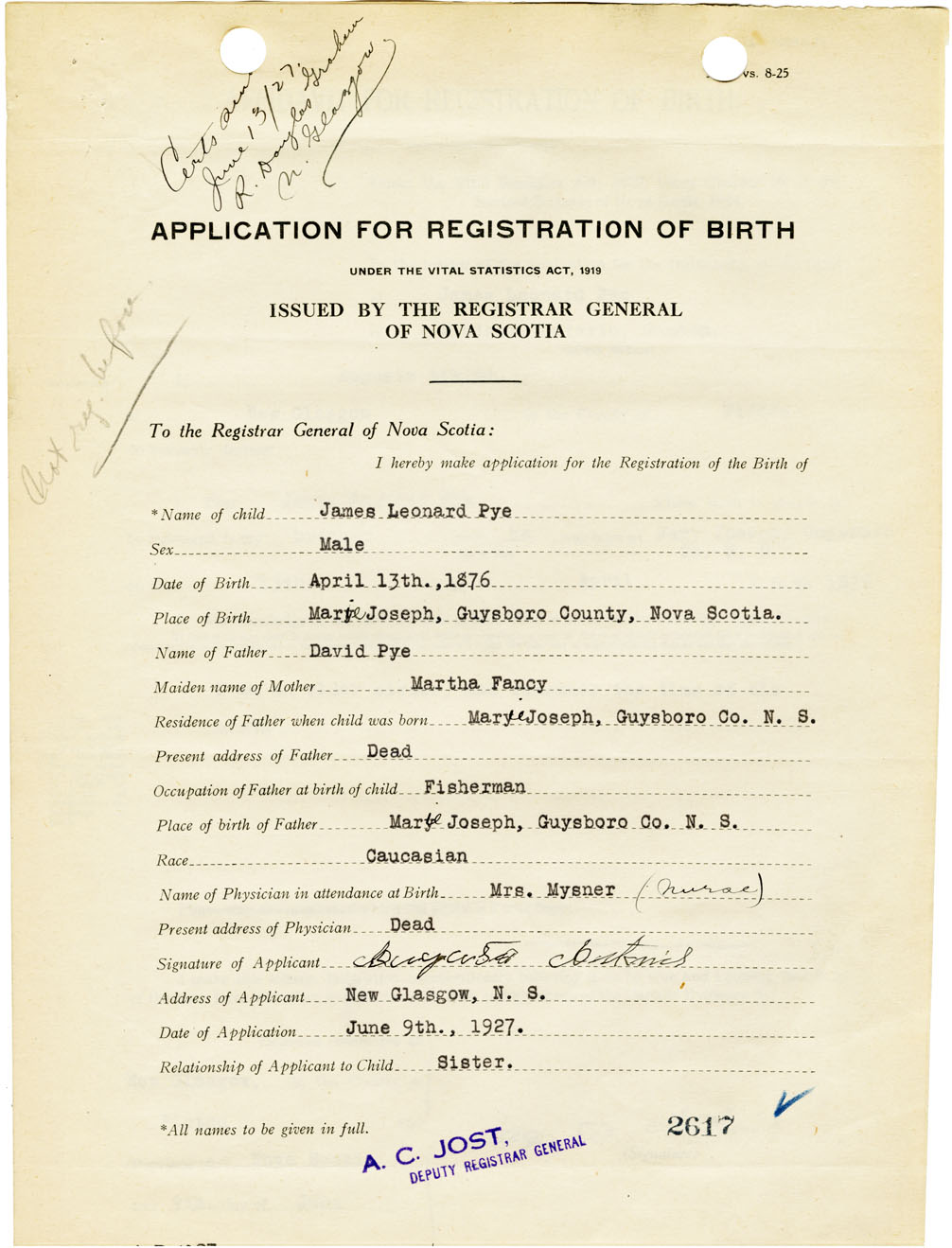 Nova Scotia Archives — https://archives.novascotia.ca/vital-statistics/birth/?ID=461634