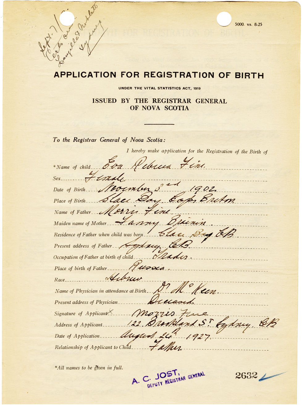 Nova Scotia Archives — https://archives.novascotia.ca/vital-statistics/birth/?ID=461647