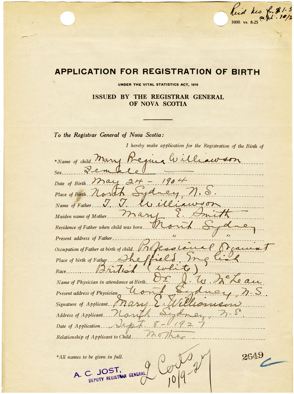 Nova Scotia Archives — https://archives.novascotia.ca/vital-statistics/birth/?ID=461655