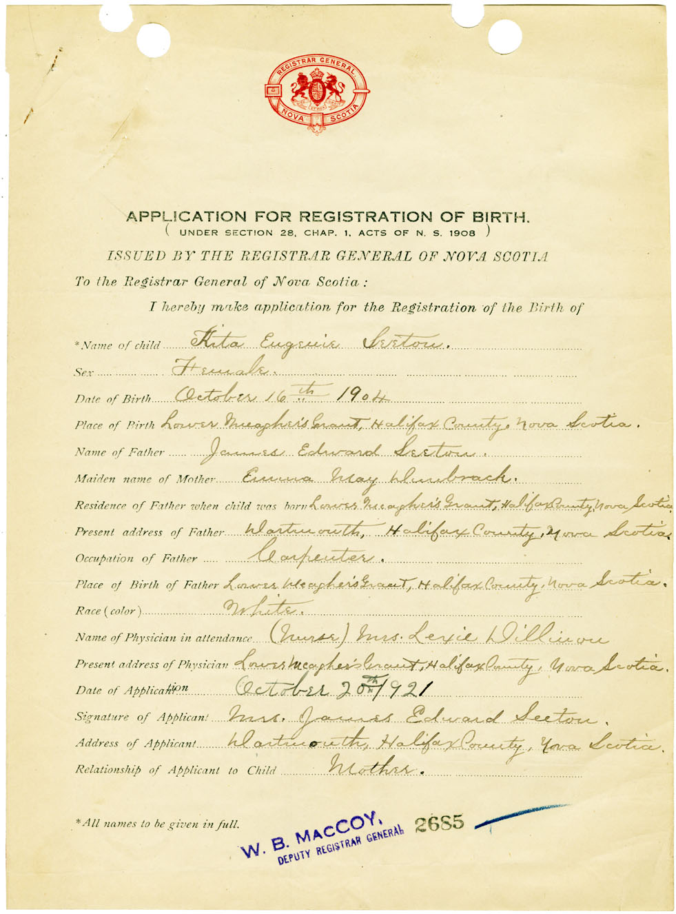 Nova Scotia Archives — https://archives.novascotia.ca/vital-statistics/birth/?ID=461684