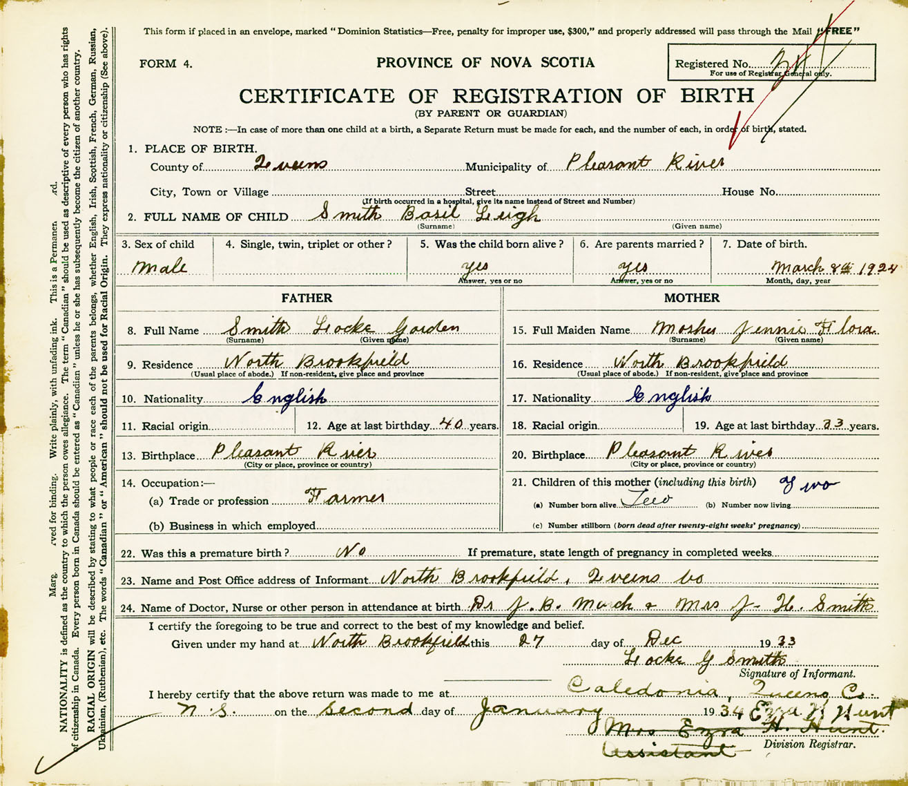 Male Birth Registration: Year: 1924 number: 90600347