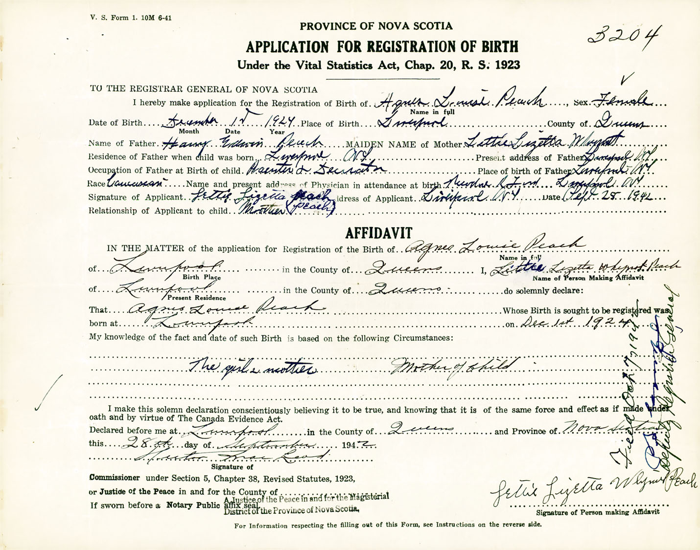 Female Birth Registration: Year: 1924 number: 91700204