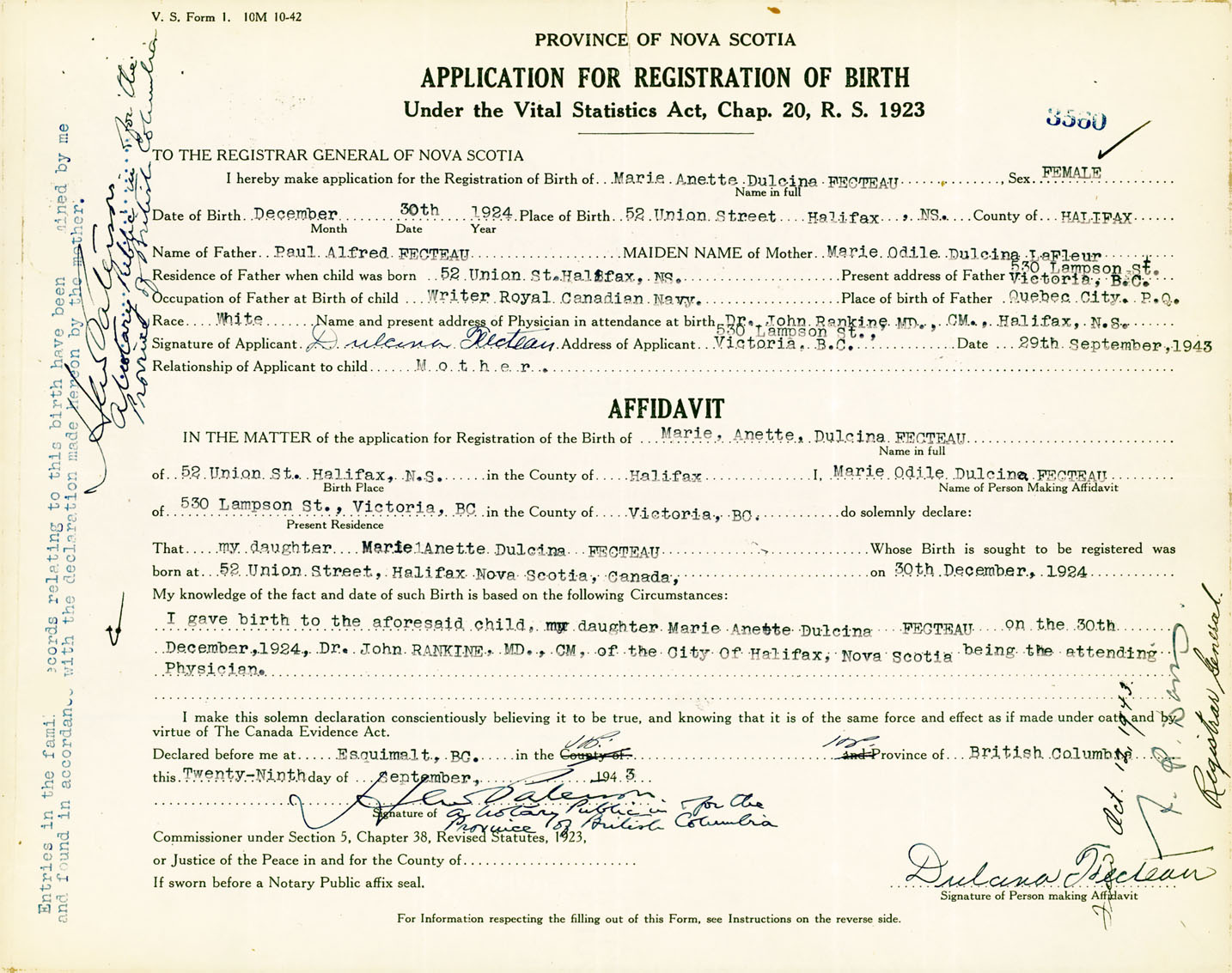Female Birth Registration: Year: 1924 number: 91700560