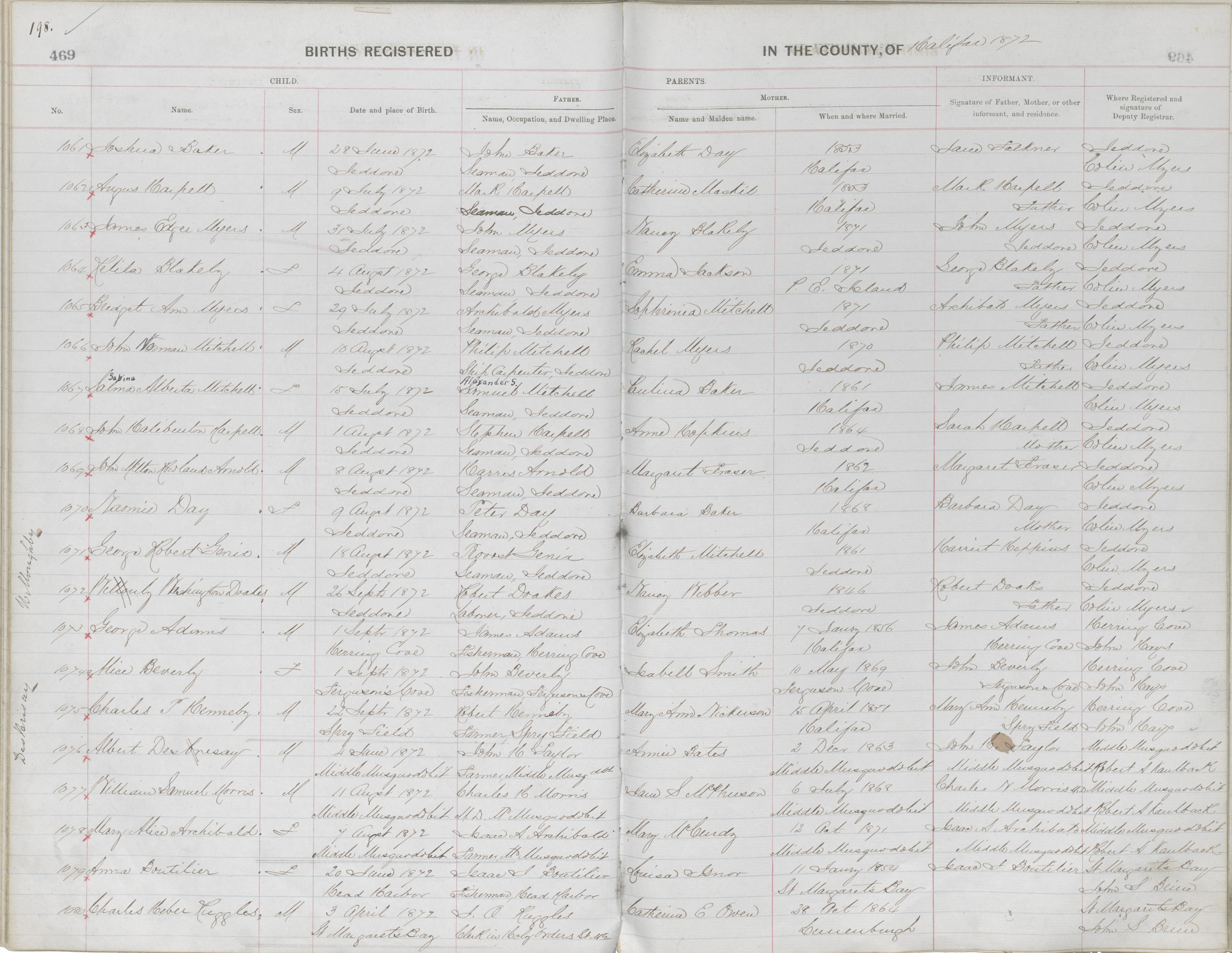 Birth Registration: Year: 1872 book: 1810 page: 198 number: 1080