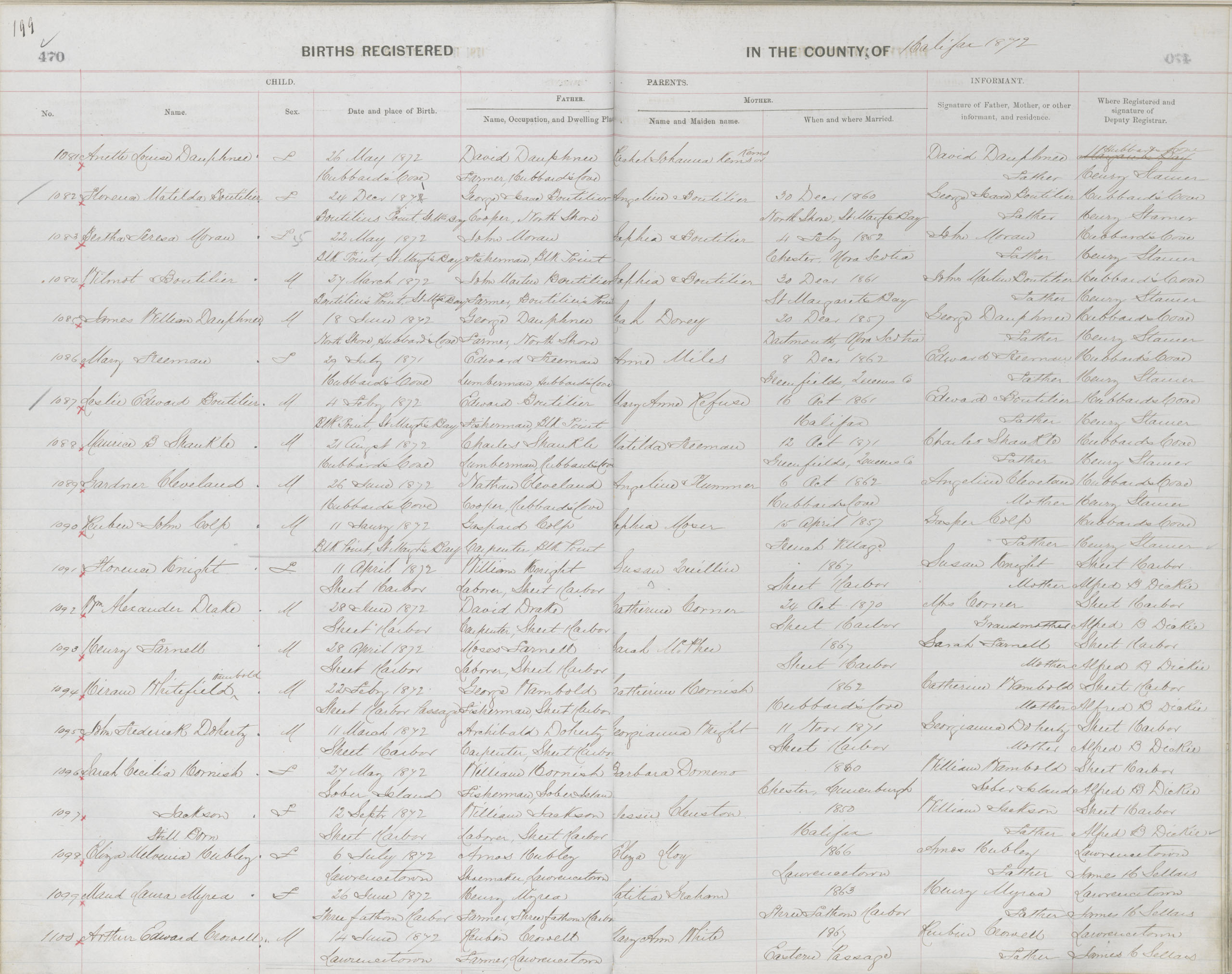 Birth Registration: Year: 1872 book: 1810 page: 199 number: 1100