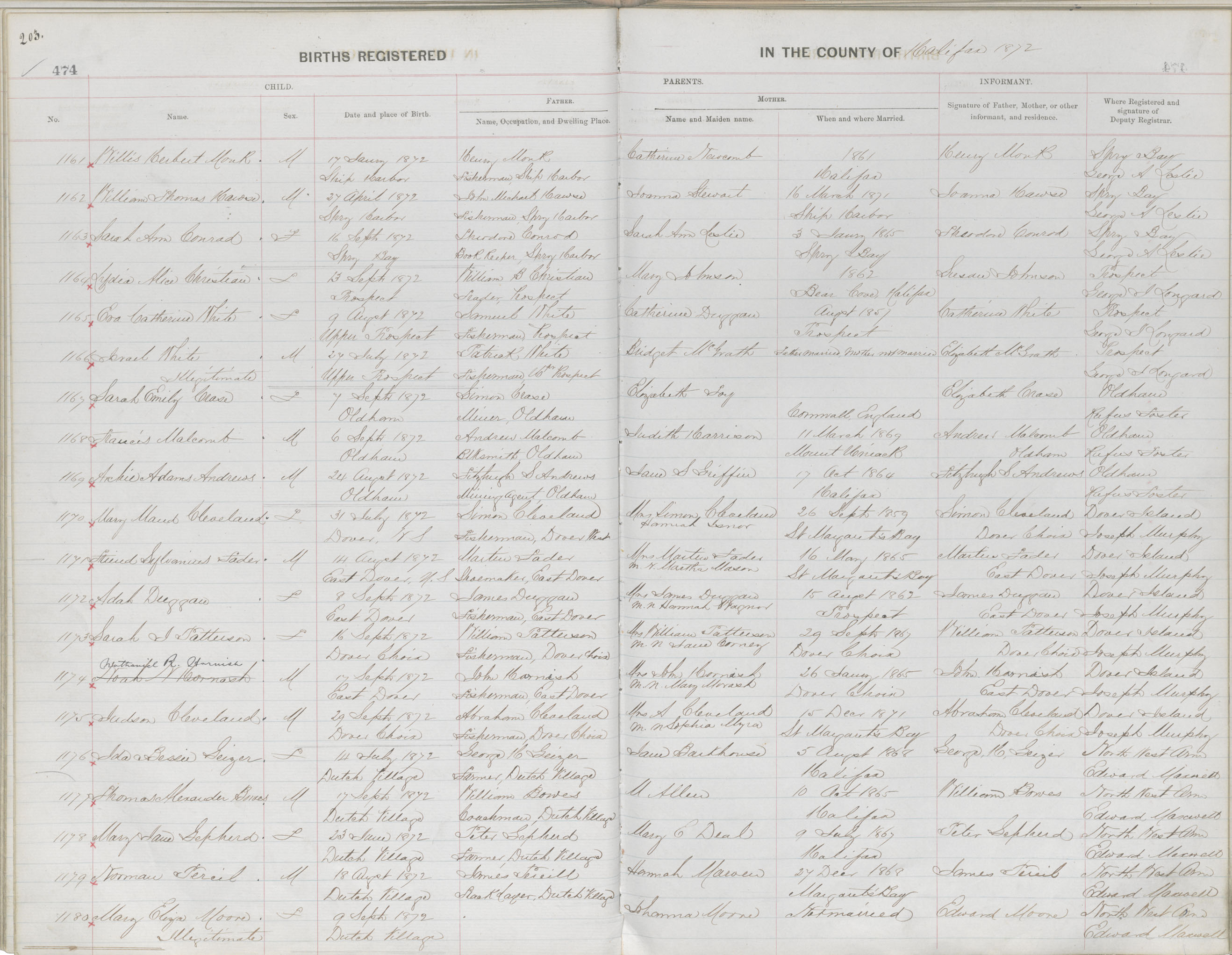 Birth Registration: Year: 1872 book: 1810 page: 203 number: 1180