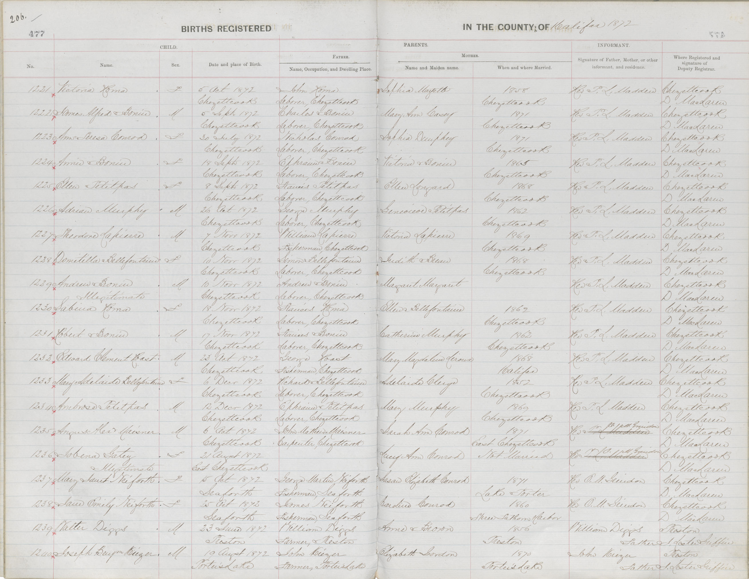 Birth Registration: Year: 1872 book: 1810 page: 206 number: 1240
