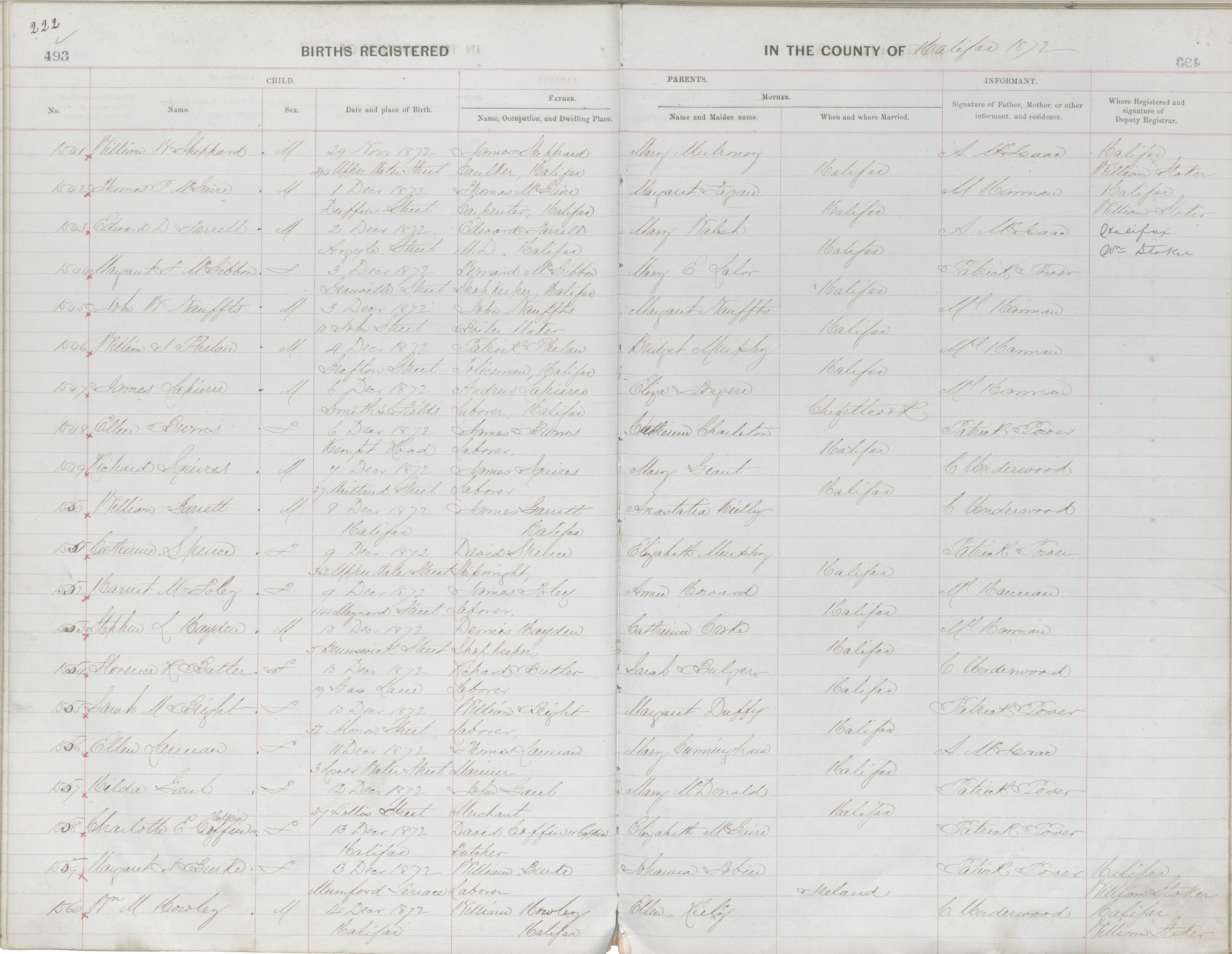 Birth Registration: Year: 1872 book: 1810 page: 222 number: 1541