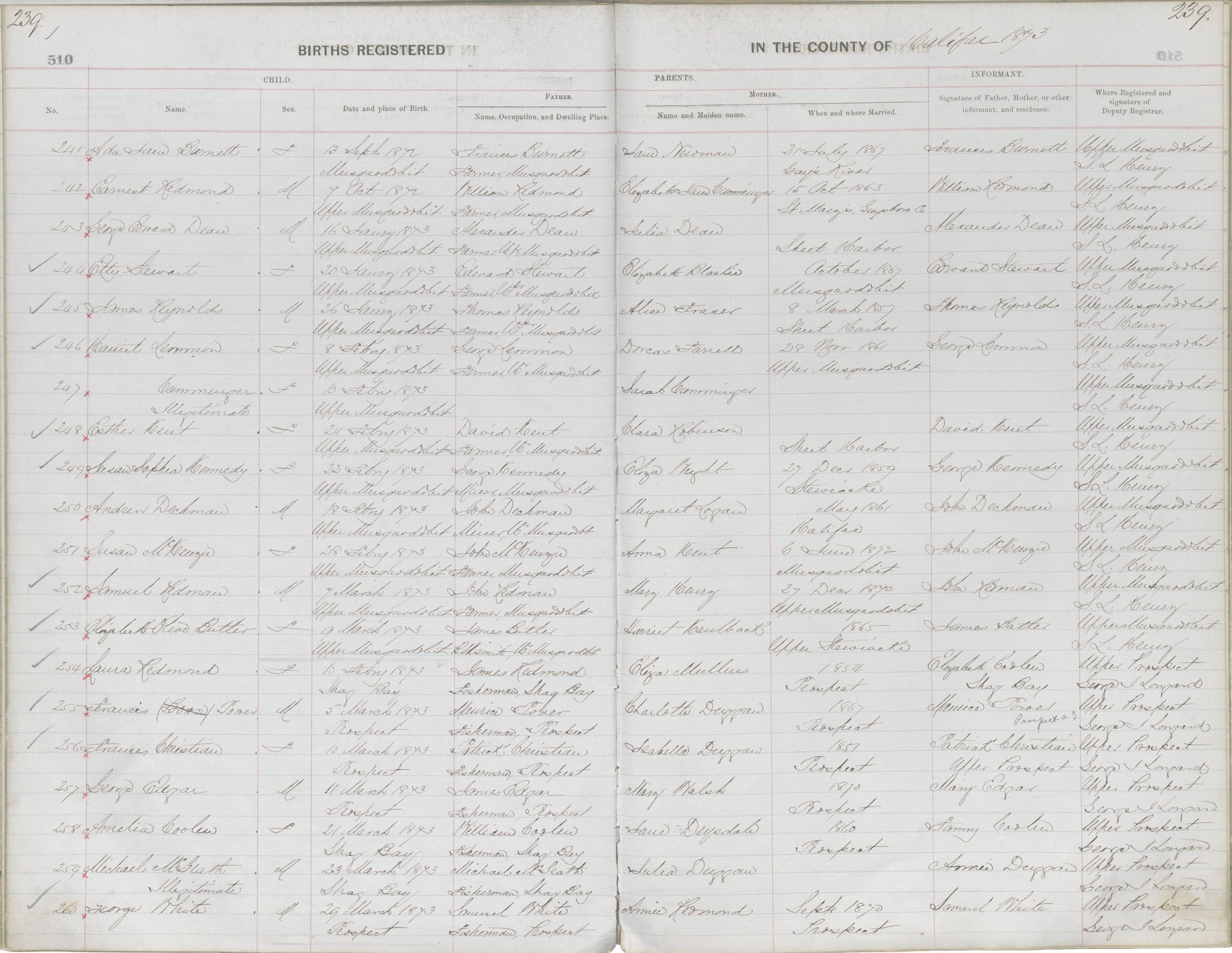 Birth Registration: Year: 1873 book: 1810 page: 239 number: 260
