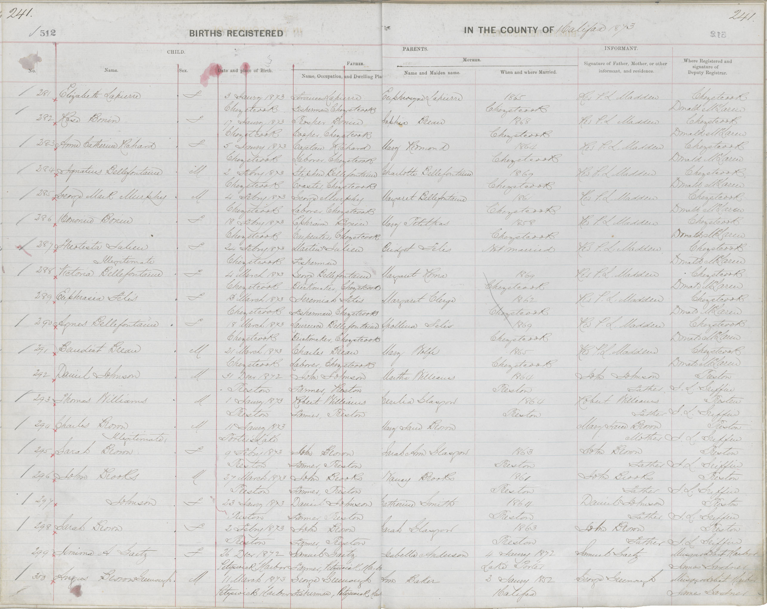 Birth Registration: Year: 1872 book: 1810 page: 241 number: 300