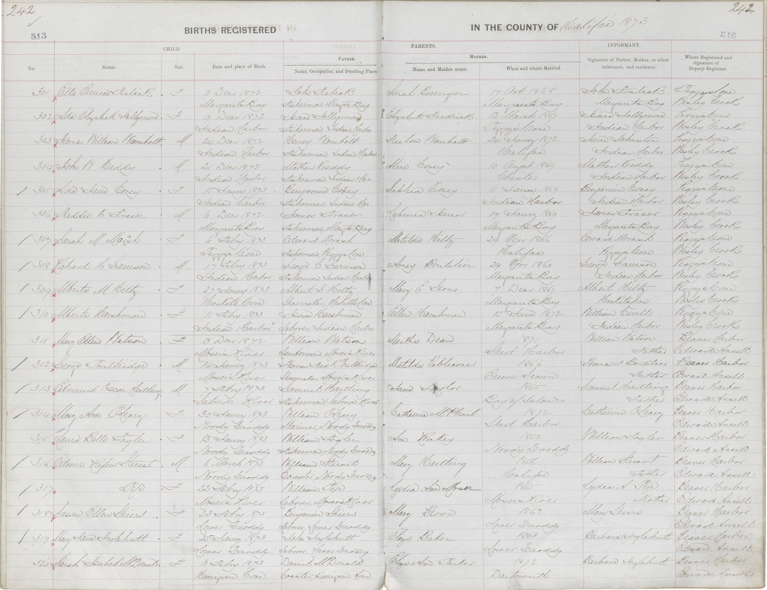 Birth Registration: Year: 1872 book: 1810 page: 242 number: 301